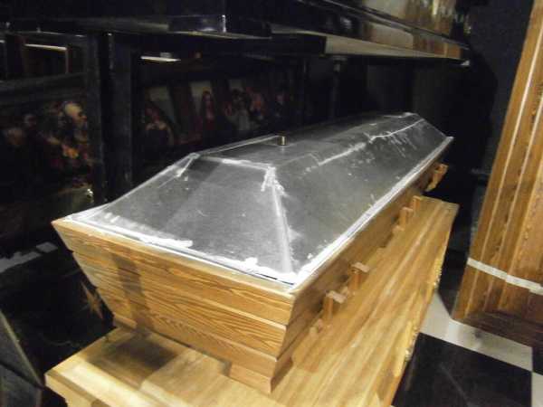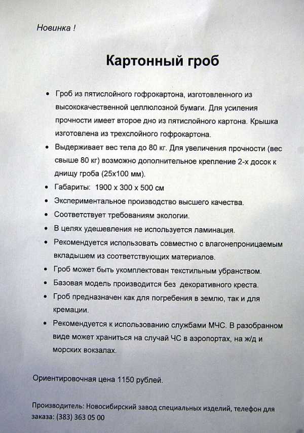 Особый интерес у посетителей вызывали новые картонные гробы по антикризисным ценам.