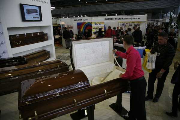 Необычная выставка проходит в столице — гробовщики и похоронные ритуальные службы со всей России съехались в Москву, чтобы обсудить последние новинки похоронной моды, обменяться опытом и заинтересовать потенциальную клиентуру.