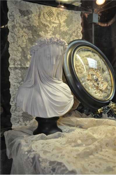 Бюсты и статуи девушек в траурной вуали — популярнейший артефакт XIX века. И трогательно, и позволяет скульптору продемонстрировать мастерство контакта с мрамором.