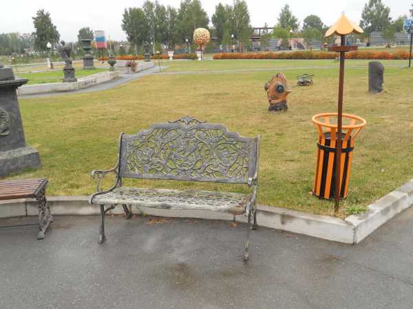 Красивая скамья, рыбка, тележка и что-то, напоминающее остров Пасхи))