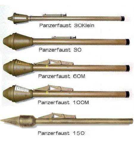 Семейство одноразовых противотанковых гранатометов производства Германии в годы Второй Мировой войны. Panzerfaust Klein изначально и назывался Фаустпатроном. Одним из его недостатков была возможность рикошета от наклонной брони. В следующих моделях этот недостаток был устранен благодаря тупоголовой форме головной части. Цифровой номер показывал прицельную дистанцию. Панцерфауст 150 представлял собой опытную версию гранатомета и не производился серийно. Кстати советские солдаты, не разбираясь в тонкостях моделей, называли все подобные гранатометы просто Фаустпатронами.