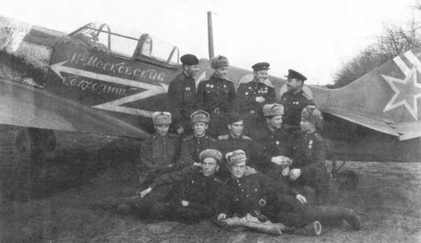 В. И. Попков из 5 ГИАП на фоне своего Ла-5Ф, 1943 год.