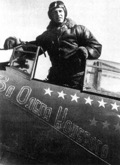 И. А. Вешняков, командир звена 171 ИАП, в кабине своего Ла-5ФН с надписью «За Олега Кошевого» на борту, 1944 год.