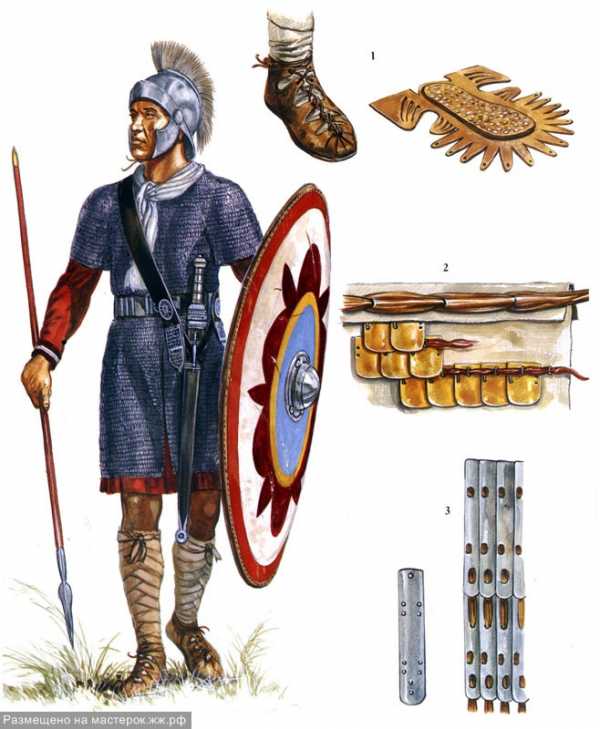 ΠΠ° Π²ΡΠΎΡΡΡ ΠΏΠΎΠ»ΠΎΠ²ΠΈΠ½Ρ 4 Π²Π΅ΠΊΠ° Π΄ΠΎ Π½.Ρ. Π²ΡΠΏΠ°Π΄Π°Π΅Ρ ΠΈ ΡΡΡΠ°Π½ΠΎΠ²ΠΊΠ° ΠΎΠΊΠΎΠ½ΡΠ°ΡΠ΅Π»ΡΠ½ΠΎΠ³ΠΎ ΡΠΈΠΏΠ° Π²ΠΎΠΎΡΡΠΆΠ΅Π½ΠΈΡ ΡΠΈΠΌΡΠΊΠΎΠ³ΠΎ Π»Π΅Π³ΠΈΠΎΠ½Π΅ΡΠ°. ΠΠΎΠΏΡΠ΅, ΠΊΠΎΡΠΎΡΠΎΠ΅ Π½Π΅ ΠΏΡΠ΅Π΄ΡΡΠ°Π²Π»ΡΠ»ΠΎ ΡΠ΄ΠΎΠ±ΡΡΠ² Π΄Π»Ρ ΡΡΠΊΠΎΠΏΠ°ΡΠ½ΠΎΠΉ ΡΡ Π²Π°ΡΠΊΠΈ, Π±ΡΠ»ΠΎ ΡΠΎΡ ΡΠ°Π½Π΅Π½ΠΎ ΡΠΎΠ»ΡΠΊΠΎ Ρ ΡΡΠΈΠ°ΡΠΈΠ΅Π², ΠΊΠΎΡΠΎΡΡΠ΅ Π² ΡΡ Π²Π°ΡΠΊΠ΅ ΠΏΠΎΡΡΠΈ Π½Π΅ ΡΡΠ°ΡΡΠ²ΠΎΠ²Π°Π»ΠΈ. ΠΠ»Π°Π²Π½ΡΠΌ ΠΎΡΡΠΆΠΈΠ΅ΠΌ Π»Π΅Π³ΠΈΠΎΠ½Π΅ΡΠ° ΡΠ²Π»ΡΠ»ΡΡ ΠΌΠ΅Ρ; Π²ΠΌΠ΅ΡΡΠΎ ΠΊΠΎΠΏΡΡ, Π³Π°ΡΡΠ°ΡΡ ΠΈ ΠΏΡΠΈΠ½ΡΠΈΠΏΡ ΠΈΠΌΠ΅Π»ΠΈ ΠΏΠΈΠ»ΡΠΌ — ΠΊΠΎΡΠΎΡΠΊΠΎΠ΅ ΠΊΠΎΠΏΡΠ΅, Π΄ΡΠΎΡΠΈΠΊ; ΠΏΠΎΠ΄ΠΎΠΉΠ΄Ρ Π½Π° Π±Π»ΠΈΠ·ΠΊΠΎΠ΅ ΡΠ°ΡΡΡΠΎΡΠ½ΠΈΠ΅, Π΄Π²Π΅ ΠΏΠ΅ΡΠ²ΡΠ΅ ΡΠ΅ΡΠ΅Π½Π³ΠΈ Π³Π°ΡΡΠ°ΡΠΎΠ², ΠΏΠΎ ΠΎΠ±ΡΠ΅ΠΌΡ Π·Π½Π°ΠΊΡ, ΠΌΠ΅ΡΠ°Π»ΠΈ ΡΠ²ΠΎΠΈ ΠΏΠΈΠ»ΡΠΌΡ, ΠΈ, ΠΏΠΎΡΠ»Π΅ ΡΡΠΎΠ³ΠΎ Π·Π°Π»ΠΏΠ°, ΡΠΈΠΌΡΠΊΠ°Ρ ΡΠ°Π»Π°Π½Π³Π° ΡΡΡΠ΅ΠΌΠΈΡΠ΅Π»ΡΠ½ΠΎ Π±ΡΠΎΡΠ°Π»Π°ΡΡ Π² ΡΡΠΊΠΎΠΏΠ°ΡΠ½ΡΡ, ΠΎΠ±Π½Π°ΠΆΠ°Ρ ΠΌΠ΅ΡΠΈ.