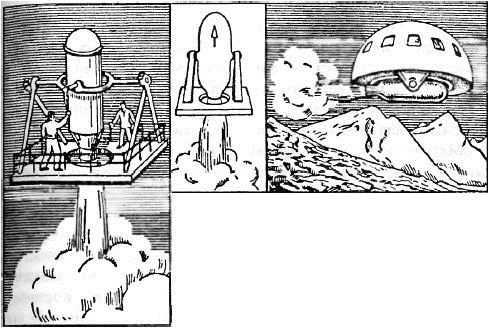 Описанное выше – классическая схема космического корабля. В «Проекте» разработаны конкретные способы подачи топлива в цилиндр, далее автор обосновывает возможность зависания аппарата над конкретным, заранее выбранным местом, осуществлять движение как вертикально, так и горизонтально и осуществлять посадку. Рисунок на пятой странице поясняет эти рассуждения.