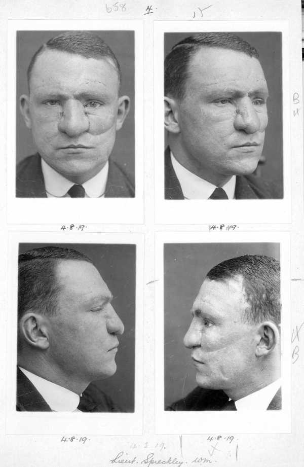 Ряд фотографий от 4 августа 1919 года показывают, как Уильяму Спрекли восстановили нос.
