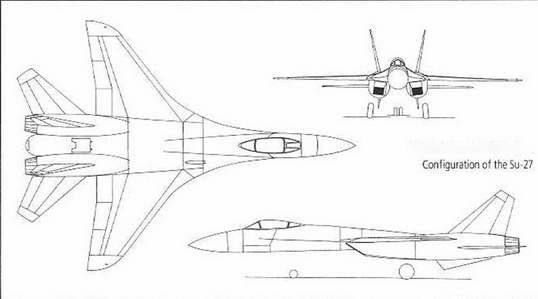 Общий вид первого варианта компоновочной схемы самолета Су-27