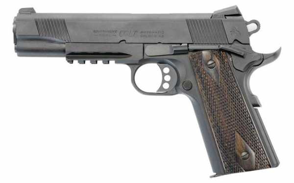 Пистолет Colt M1911 Rail Gun представляет собой дальнейшее развитие знаменитого самозарядного пистолета Colt M1911 конструкции Джона Браунинга. Colt M1911 Rail Gun стреляет патронами .45 ACP, оснащен крупными прицельными приспособлениями Novak, позволяющими быстро и точно наводить оружие на цель в условиях недостаточного освещения, хорошо защищающий руку от удара головкой курка и лучше контролируемый рычагом автоматического рукояточного предохранителя с увеличенным загнутым вверх задним выступом типа «бобровый хвост» и нижним приливом, курком с крупной петлеобразной головкой, прямым пеналом боевой пружины, облегченным спусковым крючком из сплава, рычагом флажкового предохранителя с удобным удлиненным рычагом, передней наклонной насечкой, увеличенным окном для выброса стрелянных гильз, а также креплением Picatinny для установки тактического фонаря или лазерного целеуказателя. Автоматика пистолета Colt M1911 Rail Gun работает по схеме использования отдачи при коротком ходе ствола. Сцепление ствола с затвором-кожухом осуществляется при помощи боевых выступов казенной части ствола и боевых упоров затвора-кожуха. Расцепление осуществляется снижением ствола, при помощи серьги, шарнирно связанной со стволом и рамой, во время отката. Ударно-спусковой механизм куркового типа, одинарного действия, с предохранительным взводом курка. На левой стороне рамы расположены рычаг флажкового предохранителя, рычаг затворной задержки и защелка магазина, размещающаяся в основании спусковой скобы. В задней части рукоятки пистолета Colt M1911 Rail Gun смонтирован рычаг автоматического рукояточного предохранителя, блокирующего спусковую тягу и выключающегося только при охвате рукоятки. Флажковый предохранитель блокирует курок, находящийся на боевом взводе, и затвор-кожух. Коробчатый однорядный магазин вмещает 8 патронов. Пистолет Colt M1911 Rail Gun состоит на вооружении Корпуса морской пехоты США (United States Marine Corps (USMC), US Marines) под наименованием M45 MEU(SOC).
