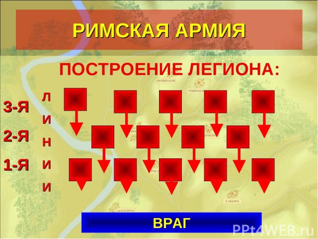 рим. войск в три линии позволяло им наращивать удар в наступлении.