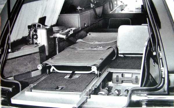 Упрощенный санитарный вариант ЗИЛ-114НА для скоростных кортежейВ 1979-м, после их успешной эксплуатации, завод собрал еще несколько санитарных машин ЗИЛ-114НА с усеченной над местом водителя крышей, собранных на шасси отслуживших свой срок лимузинов.