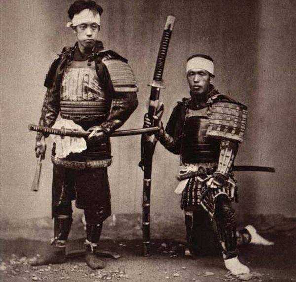 Всегда нужно давать подписи под фотографиями, иллюстрирующими любую статью. Надеяться, что и так все понятно, не следует. Вот, например, на этом фото мы совершенно отчетливо видим сразу три типа японских мечей: меч тати – в руке у стоящего самурая (на ножнах видны кольца для подвески), «полевой меч» нодати длиной около 1,5 м и более, который, однако, всадниками не использовался, а применялся пехотинцами асигару. Вот именно эти-то мечи за спиной и носили, поскольку по-другому было просто неудобно. Наконец, третий меч за поясом у сидящего обладателя нодати и есть катана.