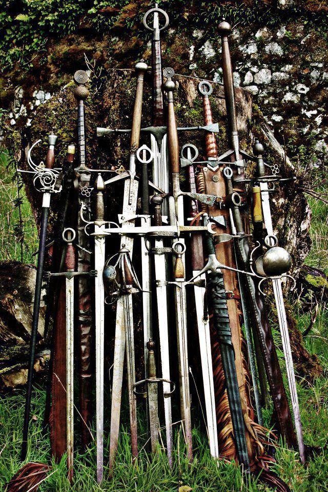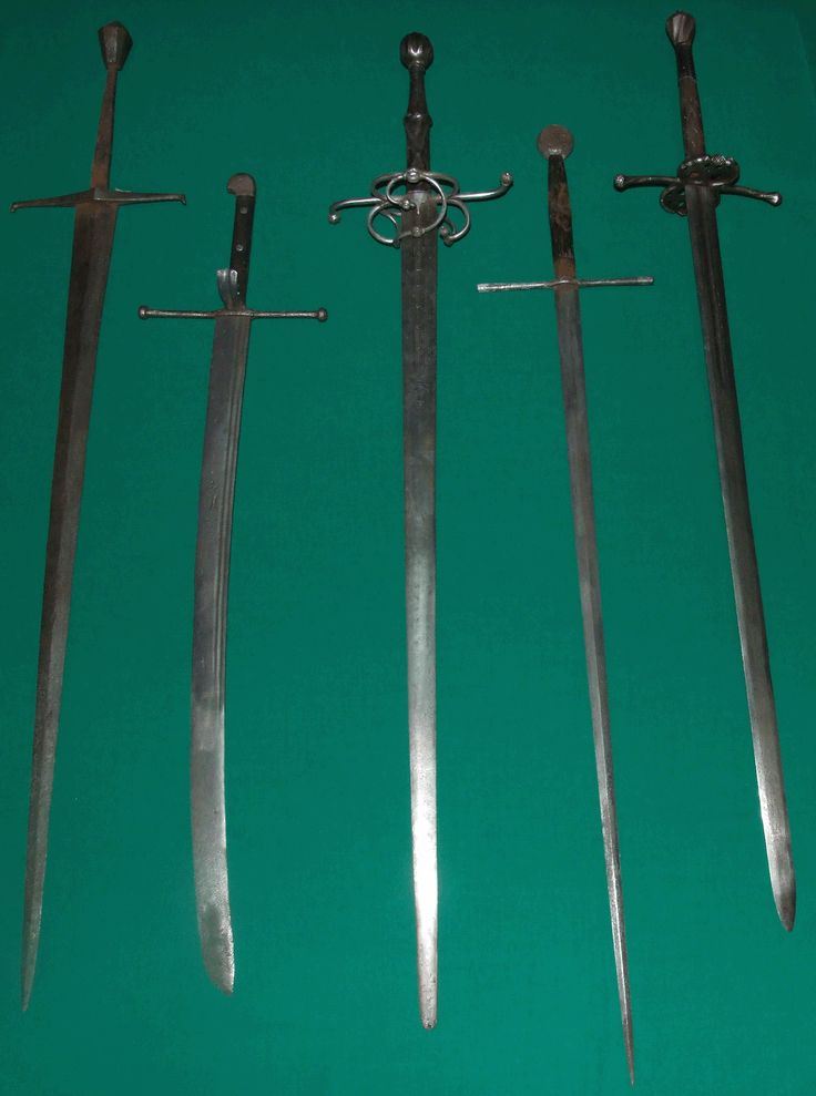Средневековые мечи — цвайхандер, клеймор, эспадон и фламберг.