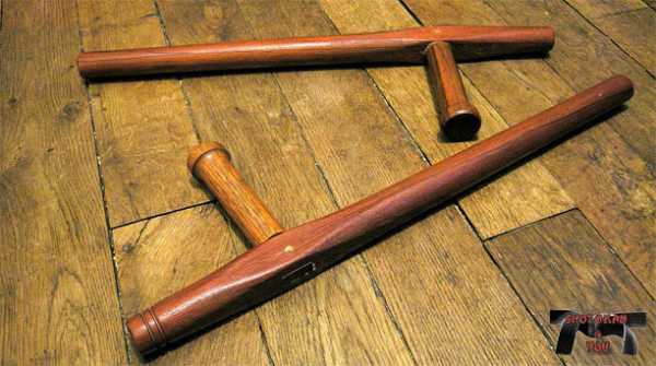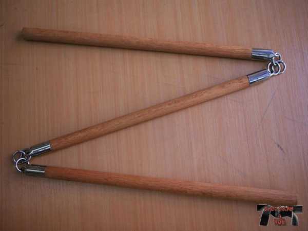 Существует также похожее на трехзвенные нунчаку оружие — трехзвенный шест: