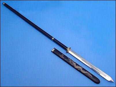 О катане известно многим, представляет она собой некоторое подобие сабли, но с длинной и прямой рукоятью, таким образом катану можно держать и двуручным хватом. Длина катаны могла быть различной (существуют разновидности катаны: тати, танто, козука, та-чи), но в целом это достаточно длинный меч размерами около 70 см-120 см. Ширина лезвия катаны около 3 см, толщина обуха примерно 5 мм. О свойствах этого меча ходит немало легенд, но одно можно сказать наверняка: технология изготовления катаны чрезвычайно сложна. Для производства катаны используется многослойная ковка, специально подобранные материалы и условия. Такое сочетание позволяло изготовить меч, способный надвое разрубить человека пополам одним взмахом.