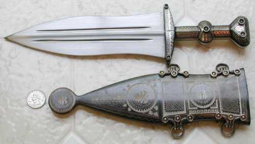Когда произносится слово “меч”, воображение рисует длинный прямой клинок. Но длинные мечи представляли собой оружие преимущественно кавалерийское и получили заметное распространение лишь в средние века. Да и тогда они встречались значительно реже коротких мечей, служивших оружием пехоты. Даже рыцари перепоясывались длинными мечами только перед боем, а в иное время постоянно носили кинжалы.