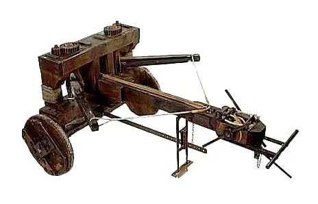 Осадных башен было недостаточно, ведь с них стреляли всё те же лучники. Требовались орудия, позволяющие запускать тяжёлые снаряды. В руках такое оружие уже не помещалось.