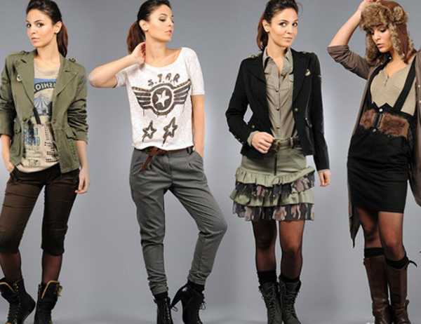 Дизайнеры начали представлять на суд зрителей куртки, пальто, бушлаты милитари для женщин, демонстрировать оригинальные платья – рубашки и юбки милитари, предлагать женщинам брюки милитари, пиджаки, футболки и т.д.