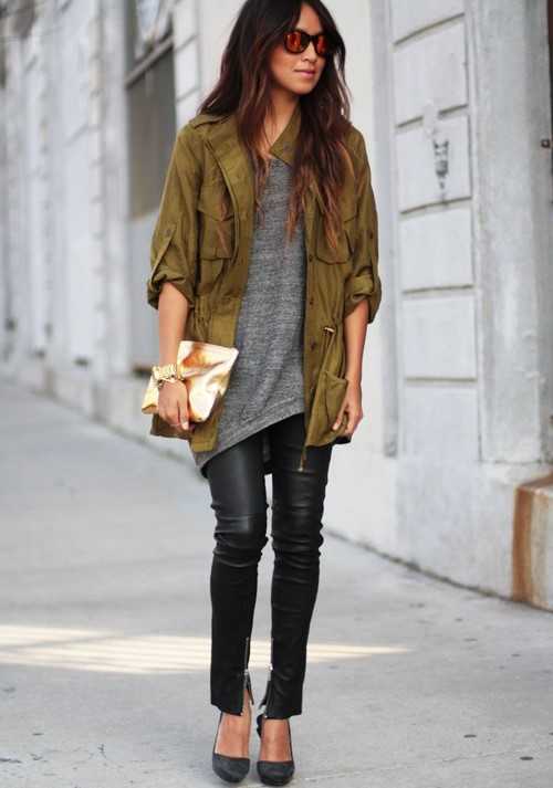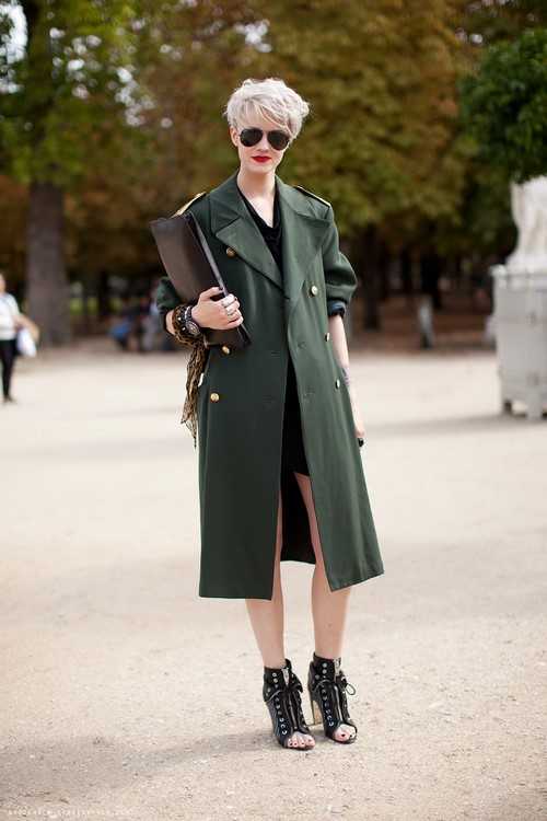 Одежда в стиле милитари может включать плащи, шенели, куртки, ветровки, кители. Зимой вы можете преобразить свой образ, одев фуражку, кепи, берет или зимнюю шапку на подобии военной.