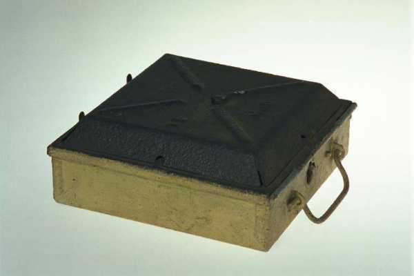Мина представляла собой округлую металлическую коробку. Внутри коробки помещался заряд взрывчатки и устанавливался взрыватель.