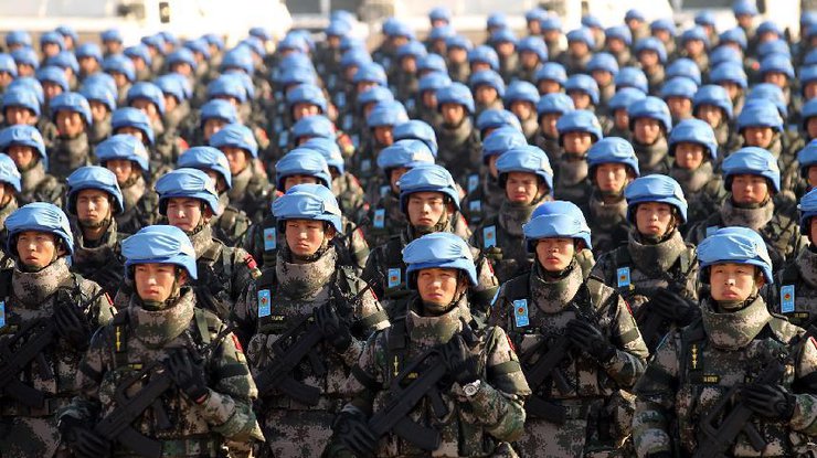 Миротворец в военной форме с пистолетом в руках.