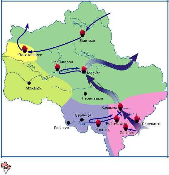 Если посмотреть на карту, то действия завоевателей покажутся непонятными. Казалось бы, что взяв Рязань, они должны прямым путем идти на Владимир — столицу всей северо-восточной Руси, а не делать «крюк» на Коломну и Москву. Однако прямого пути-то и не было — заболоченные, бескрайние, почти безлюдные леса между Рязанью и Владимиром совсем не годились для прохода огромной конной армии завоевателей. Единственными удобными «дорогами» были реки — по их льду и двигалась вражеская конница (поход начался в декабре).