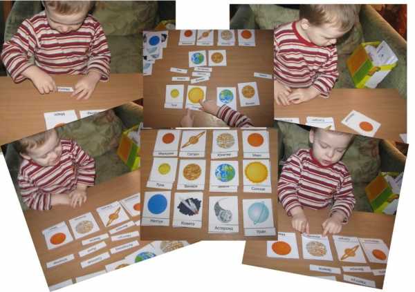 Чтобы переключить его внимание и порадовать снова перешли на математические задания. Сначала считали планеты по карточкам с количествами.