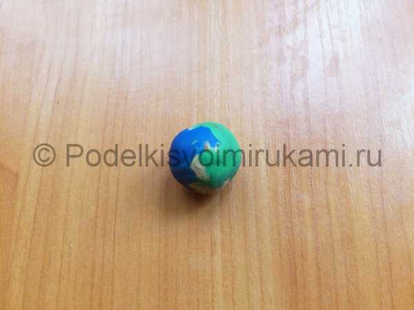 8. Далее займитесь родной планетой – Землей. Это самая яркая планета Солнечной системы. Для ее лепки понадобится синий или голубой, зеленый, желтый кусочки.