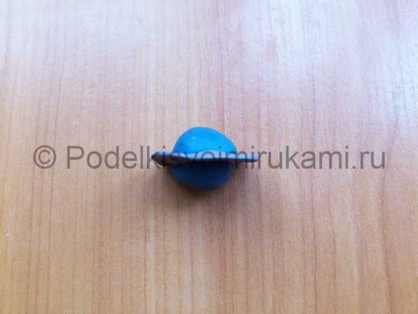 6. Налепите лепешку на голубой шарик и раскатайте (разгладьте) поверхность пластилина.