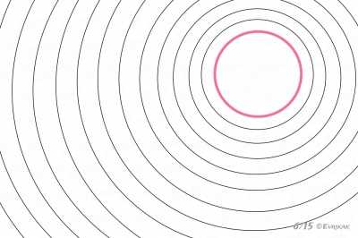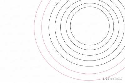 Круги постепенно увеличиваются. Конечно, полностью они не поместятся, поэтому рисуйте полукруги.