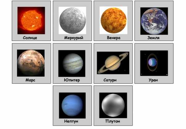 Для самых маленьких малышей Вы можете просто показывать карточки с Планетами и перечислять их названия. Потом предложить ребенку выбрать сначала из двух вариантов, потом более нужную Планету. Очень хорошая игра, когда Вы распечатываете два варианта с этими космическими карточками, один вариант разрежьте на карточки с Планетами и предложите ребенку разложить карточки с Планетами при этом называйте, как называется та или иная Планета. Еще можно играть в очень хорошую игру на развитие памяти — распечатайте два варианта с Планетами Солнечной системы, разрежьте на карточки, переверните другой стороной и находите по парам две одинаковые Планеты.