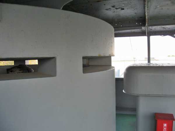Много чего железного поснимали, видимо чтобы облегчить, стоит он видимо на суше. 152 мм. орудия забраны какими то жестянками. Тем не менее броневой пояс вроде как существует в первозданном виде. Башни главного калибра толи переделали, толи как то заварили хитро — стволам пониматься дырки я не особо увидел. Барбеты эти непонятные — жестяные, просвета между башней и барбетом нет — тоже нюанс.