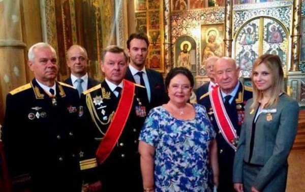 Космонавт Леонов в окружении лиц, неоспоримо вызывающих доверие и на соответствующем беспрекословной вере фоне