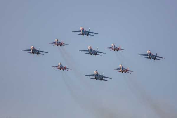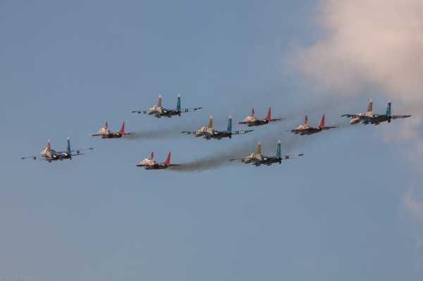 2 и 5 июля прошли показательные выступления пилотажных групп «Русские Витязи», «Стрижи» и «Русь» на открытии и закрытии VII Международного военно-морского салона в Санкт-Петербурге.
