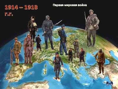 Мировая империалистическая война 1914 -1918 годов была самой кровопролитной и жестокой из всех войн, какие мир знал до 1914 года. Никогда ещё противоборсвтующие стороны не выставляли таких огромных армий для взаимного уничтожения. Общая численность армий доходила до 70 млн. человек. Все достижения техники, химии были направлены на истребление людей. Убивали всюду: на земле и в воздухе, на воде и под водой. Ядовитые газы, разрывные пули, автоматические пулемёты, снаряды тяжёлых орудий, огнемёты — всё было направлено на уничтожение человеческой жизни. 10 млн. убитых, 18 млн. раненнх – таков итог войны.
