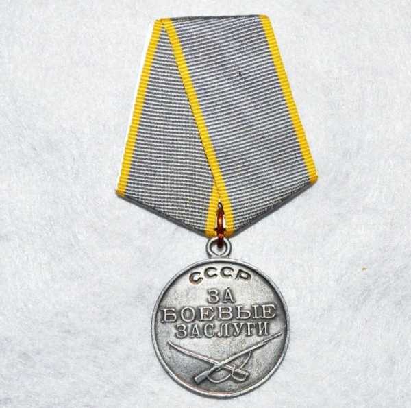 Медаль «За Боевые Заслуги» была учреждена в 1938 году.Медалью «За Боевые Заслуги» награждали за активное содействие успеху боевых действий; за инициативные и умелые действия в бою; за отличные успехи в боевой и политической подготовке; за освоение новой боевой техники; за поддержание высокой боевой готовности воинских частей и т.д.