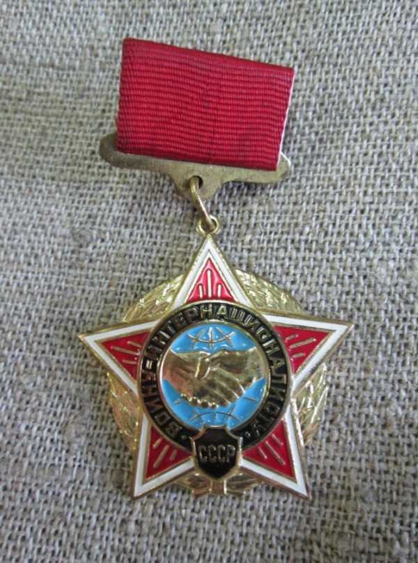 Знак с данным названием считается универсальным знаком почета солдатов-афганцев, а также основным инфицирующим признаком, указывающим на причастие к военным действия на территории Афганистана во времена ВОВ. В те времена его вручали всем участникам войны. Медаль представляет собой пятиконечную красную звезду с характерной надписью «Воину-интернационалисту», в середине которой расположены две руки, скрещенные в рукопожатии.