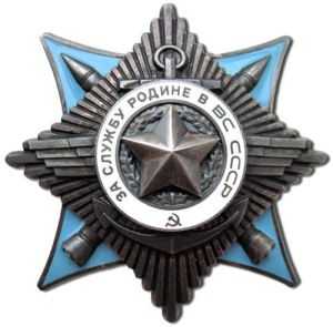 Орден «За службу Родине в Вооруженных Силах СССР» учреждён в 1974 году. Имел 3 степени.Лица, награждённые тремя степенями этого ордена по статусу приравнивались к Героям Советского Союза, но таких за всю историю СССР было только 13 человек.