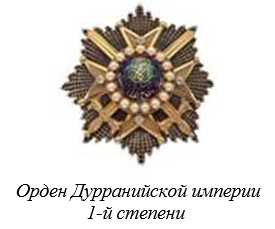 Период шах Шуджа (1839 — 1842). Первые «афганские» награды, учрежденные по европейскому образцу: орден Дурранийской империи и медаль Гузни. Орденом Дурранийской империи награждались в основном английские генералы и офицеры, которые помогли шах Шуджа захватить власть в Афганистане.