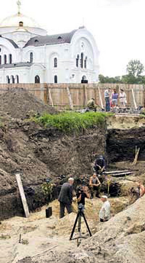 Сергей Мачинский: Получить разрешение на раскопки очень непросто. Да и нынешний облик цитадели сильно отличается от того, что мы видим на фотографиях лета 1941-го. Поэтому сначала нам предстояло пройти полутораметровое наслоение почвы, накопившейся за семь десятилетий. Когда воронка была очищена, то в ней среди битого кирпича мы действительно обнаружили останки советских воинов.