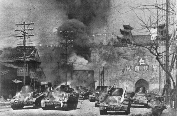 Японские танкетки у ворот Чжунхуа Нанкина.