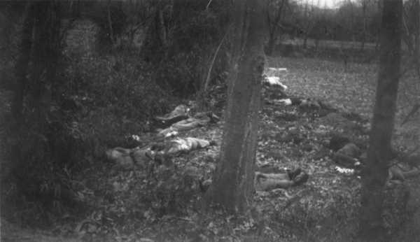 Казненные японскими солдатами китайцы в лесу в окрестностях Нанкина. Декабрь 1937 г.
