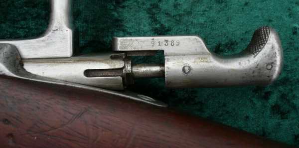 На стволе с правой стороны расположен кронштейн для крепления штыка, а с левой стороны – прямоугольный выступ для мулька в кольце штыка. Штык примыкался к винтовке в необходимых случаях (перед штыковым боем, часовыми на постах и т. п.) и носился обычно в железных ножнах на поясе.