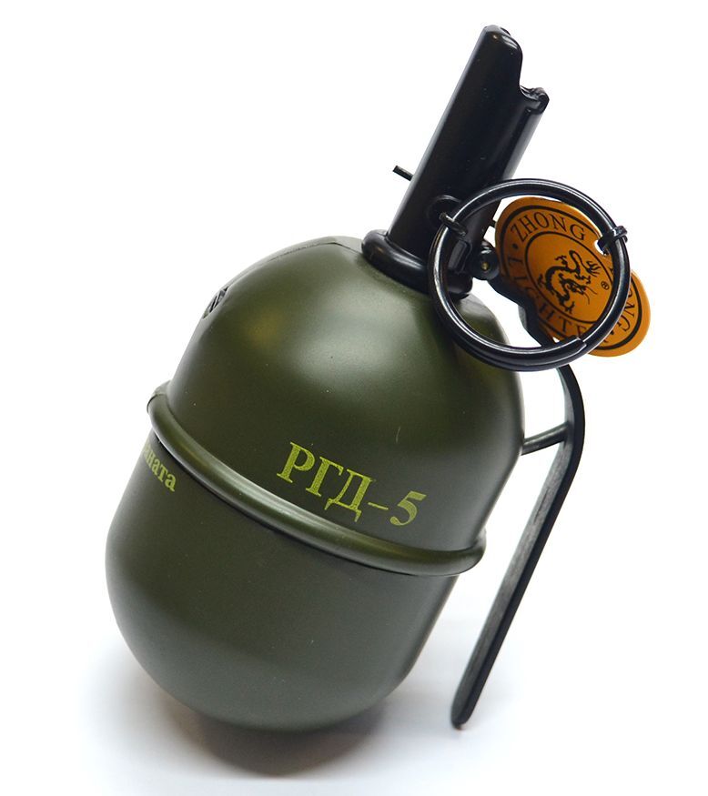 Граната РГД-5 — осколочно-фугасная чугунная граната, используемая Российской Федерацией в качестве более дешевой альтернативы осколочной гранате Ф-1 времен Второй мировой войны. …Вместо этого гранаты этого стиля начинены более мощным взрывчатым веществом, предназначенным для нанесения увечий…