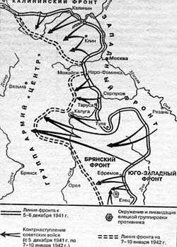 8 декабря 1941 г. Гитлер отдал директиву о переходе германских вооруженных сил к обороне на всем советско-германском фронте. В директиве говорилось, что «внезапно наступившие сильные морозы на Восточном фронте и связанные с этим трудности подвоза снабжения вынуждают немедленно прекратить все крупные наступательные операции и перейти к обороне». Но дело было не в морозах. Советские войска местами уже прорвали вражескую оборону и устремились в ее глубину.