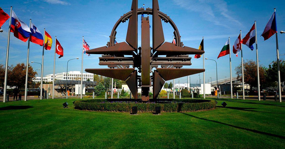 Встреча министров обороны стран НАТО в Брюсселе, БельгияОбщий вид официальной трибуны НАТО в преддверии церемонии открытия саммита НАТО в штаб-квартире НАТО в Брюсселе, Бельгия, 11 июля 2018 г. Встреча министров обороны НАТО в Брюсселе, Бельгия Встреча министров обороны НАТО в Брюсселе, БельгияРазмахивая флагом с логотипом НАТО. Редакционная 3D-рендерингЛондон, Великобритания — 15 февраля 2023 года: Национальный флаг Индонезии и флаг НАТО.
