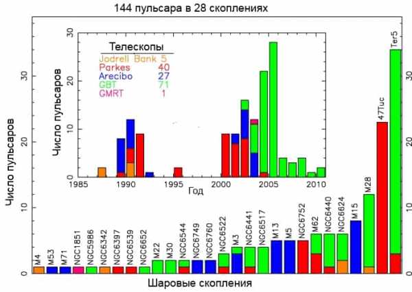 К 2010 году было найдено 1800 пульсаров при помощи радиообнаружения и 70 через гамма-лучи. У некоторых экземпляров даже замечали планеты.