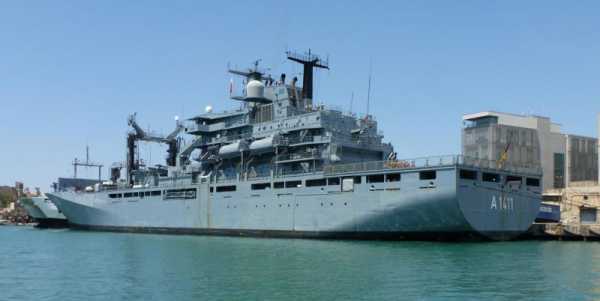 Танкер (корабль комплексного снабжения) типа “Берлин”. Вместимость — 9330 тонн корабельного и авиационного топлива и пресной воды. + 550 тонн грузов в стандартных контейнерах. Также, на борту имеется мобильный госпиталь и пара вертолетов.