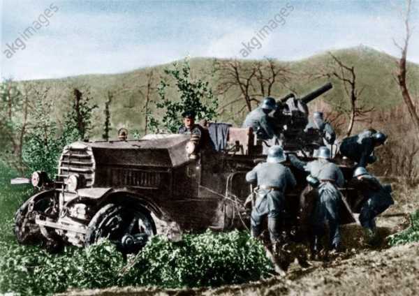 Гаубица и охраняющий ее зенитный расчет.