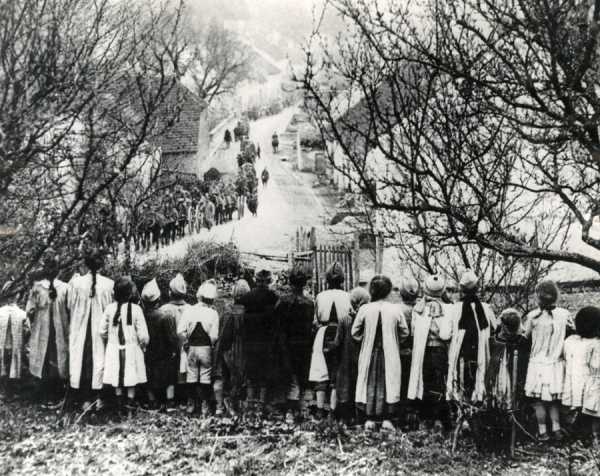 Немецкие войска образовали «живую стену для защиты родины». Англичане же, наоборот, повели ряд «жестоких наступлений» и «зверских атак». Поскольку немцы привыкли мыслить в подобных категориях, большинству населения было сложно смириться с 231-й статьей Версальского договора, возлагавшей на немцев ответственность за ведение захватнической войны.