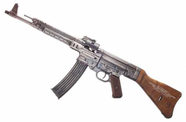 Следующее оружие Вермахта (фото приведено ниже) Шмайссер разработал в 1943 году. Сначала оно было названо МР-43, а впоследствии — StG-44, что означает «штурмовая винтовка» (sturmgewehr). Данная автоматическая винтовка по внешнему виду, да и по некоторым техническим характеристикам, напоминает автомат Калашникова (который появился позже), и существенно отличается от МР-40. Дальность ведения прицельного огня у неё составляла до 800 м. У StG-44 даже предусматривалась возможность крепежа 30 мм гранатомета. Для ведения стрельбы из укрытия конструктором была разработана специальная насадка, которая надевалась на дульную часть и изменяла траекторию полета пули на 32 градуса. В серийное производство данное оружие попало только осенью 1944 года. За годы войны было выпущено около 450 тысяч таких винтовок. Так что мало кто из немецких солдат успел воспользоваться подобным автоматом. StG-44 поставлялись в элитные части Вермахта и в подразделения Ваффен СС. Впоследствии это оружие Вермахта использовалось в Вооруженных Силах ГДР.